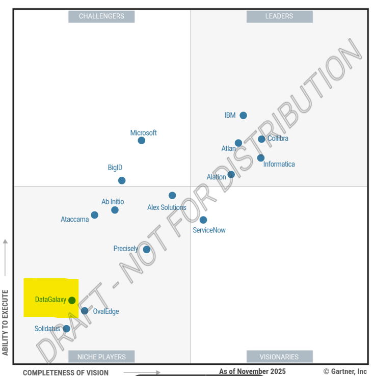 Position DataGalaxy in Gartner's Magic Quadrant as a credible and innovative player in data governance